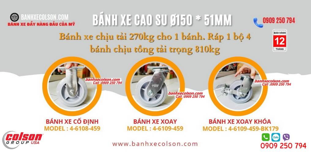 Bạn đang tìm mua các loại bánh xe đẩy chịu lực 300kg cho 1 bánh về ráp mới hoặc thay thế cho các xe đẩy hàng đang sử dụng. Bạn đang phân vân lựa chọn loại nào có chất lượng tốt, bảo hành đầy đủ. Xin giới thiệu bánh xe đẩy Colson tự hào là nhà sản xuất bánh xe đẩy hàng đầu của Mỹ từ hơn 130 năm qua, cung cấp hơn 200.000 kiểu dáng bánh xe đẩy khác nhau, từ những bánh xe đẩy loại nhỏ dùng cho nội thất đến các loại lớn sử dụng cho ngành công nghiệp.