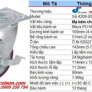 Thông số kích thước bánh xe có khóa bên nhựa pu 100×51 S4-4209-925P-B3