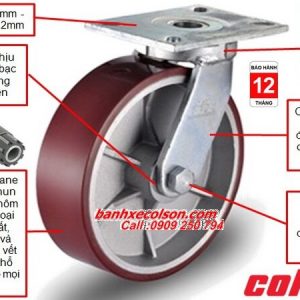 Bánh xe đẩy PU lõi Nhôm Colson dùng trong trong công nghiệp nặng có các đặc tính: không tạo vết trên sàn, lăn nhẹ, êm và chịu va đập. Kích thước bánh xe đẩy từ 200 ~ 300mm chịu tải trọng 1,035kg đến 1,575kg tùy vào đường kinh bánh xe. Với đa dạng các kiểu lắp bánh xe càng cố định, bánh xe càng xoay, bánh xe đẩy có khóa.