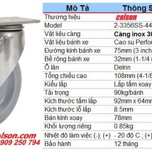 Thông số kỹ thuật bánh xe xoay cao su d75 càng inox 2-3356SS-444