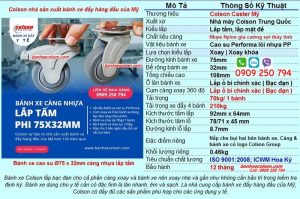 Bộ 4 bánh xe chịu lực 200kg có đường kính 75mm ( 3 inch ) bề rộng 32mm ( 1-1/4 inch ) lắp mặt đế, mặt ...